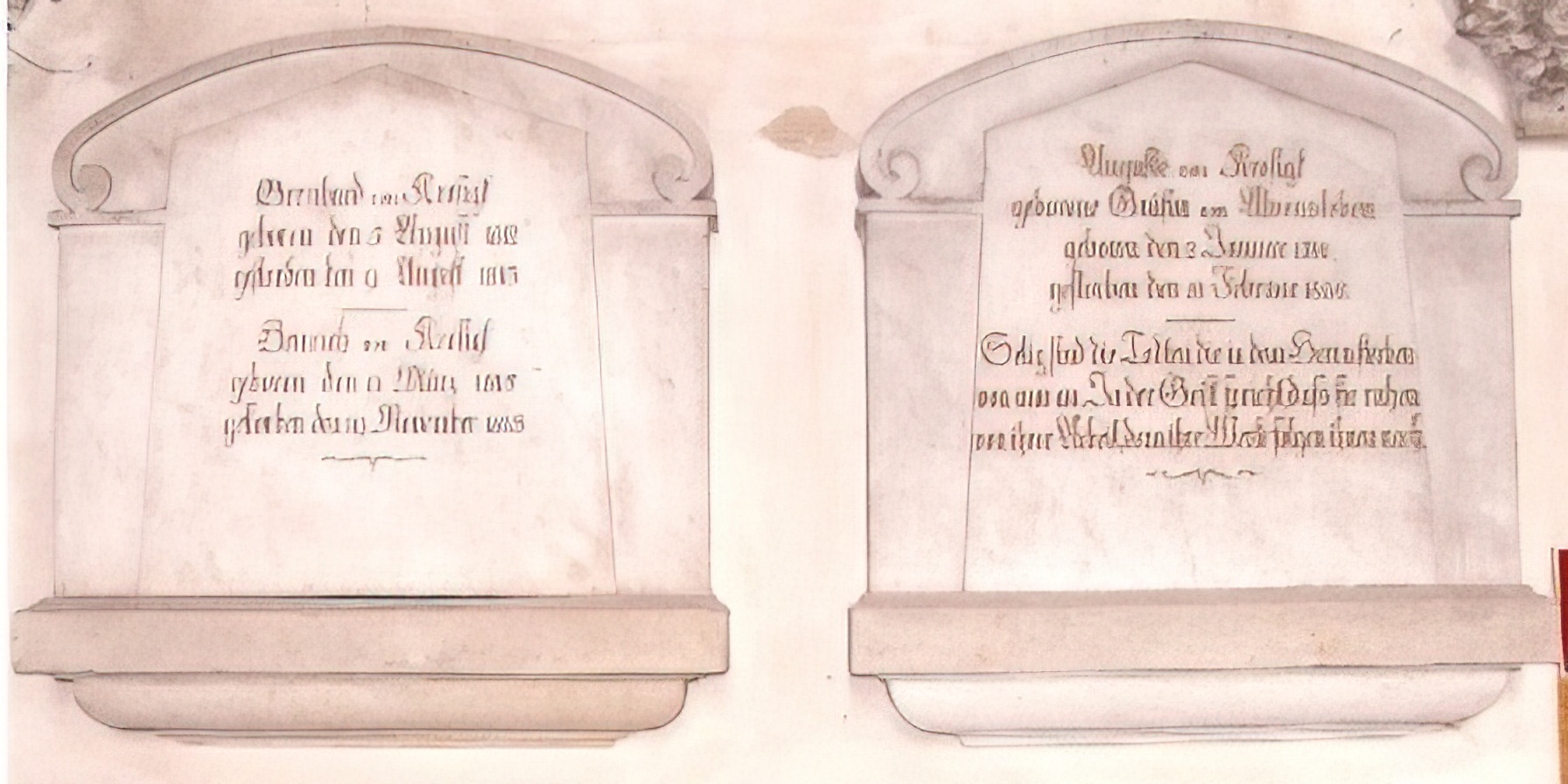 Erinnerungstafeln für Bernhard (1812-1813) und Heinrich v. Krosigk (9.3. -19.11.1815) und deren Mutter Auguste v. Krosigk, geb. Gräfin v. Alvensleben (1791-1856)